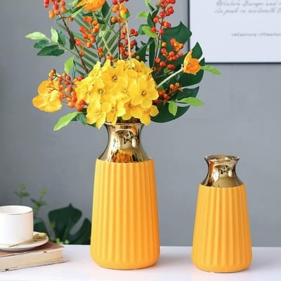 Декоративна ваза от керамика с матово покритие и златистo гърло