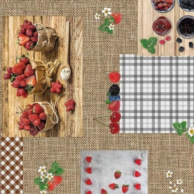 - Щампа: различни текстилни материали, ягоди, къпини, череши, боровинки и сладка